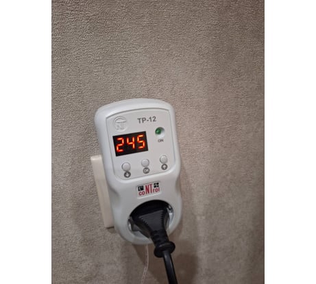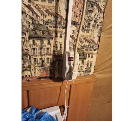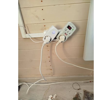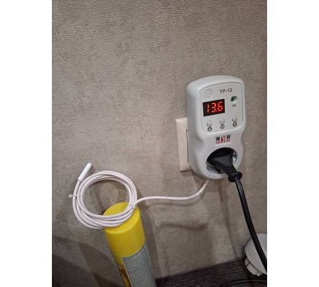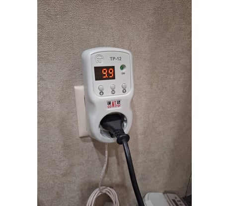 Используется совместно с обогревателем в неотапливаемой комнате на даче. Понравилось то, что датчик температуры можно закрепить в стороне от розетки.