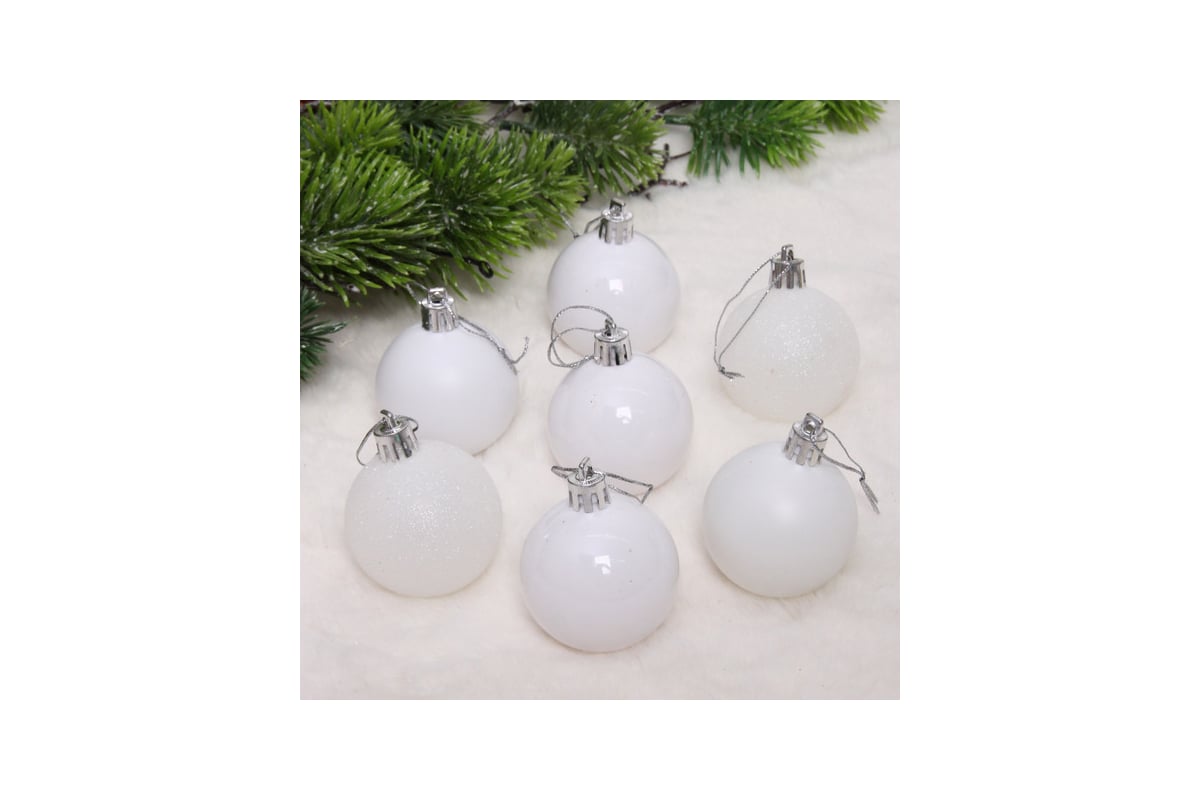 Новогодние шары Серпантин 5 см, набор 24 шт., "Микс фактур", белоснежный 652-407