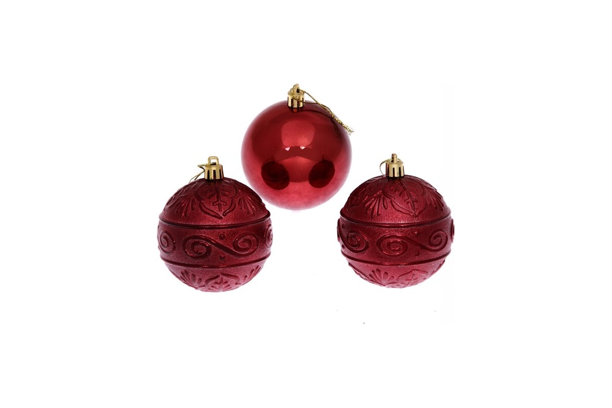 Новогодние шары Серпантин 8 см, 3 шт., Микс фактур, темный рубин 201-0847