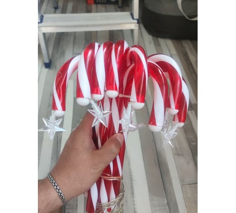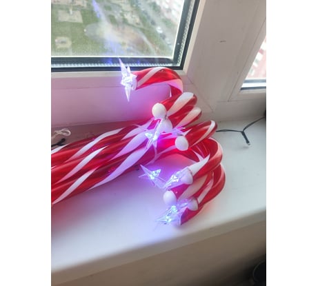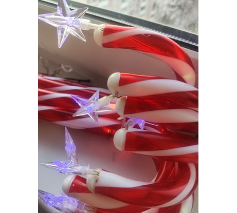 Идея неплохая, на картинке с сайта выглядит все отлично. Но по факту не все совсем как на фото. Первое - звёздочки светят одним цветом, а не многоцветные, как на картинке с коробки. Второе - звёздочки не имеют длинного проводка на котором висят/болтаются, как на фото с сайта. Провод еле-еле торчит из конфеты и внатяг оттопыривает в бок звезду. Третье - торец конфеты где звезда заклеен намертво непонятной белой заглушкой, которой на фото с сайта опять нет. А так неплохо, можно красиво что-то украсить.