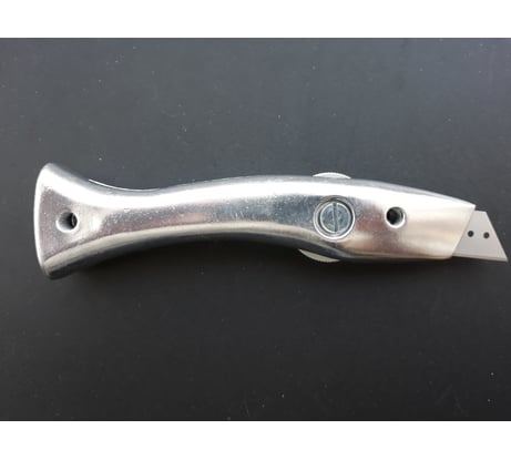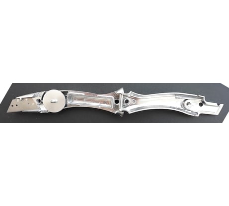 Внешний вид немного отличается от представленного на фото в ВИ. Ручка ножа целиком отлита из алюминия. Снаружи зашлифована, внутри остались заусенцы от литья. Конструкция простая и надёжная.