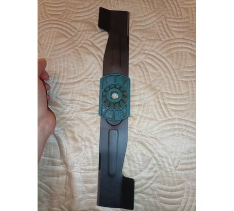 Данный нож не совместим с газонокосилкой Huter ELM-1400. У Huter ELM-1400 противоположное направление вращения вала двигателя. Физически нож идеально садится в посадочное место на Huter ELM-1400, но стоит вверх ногами получается. Для того чтобы его нормально поставить на Huter ELM-1400 нужно подрезать два пластиковых зацепа на крыльчатке газонокосилки, но при этом за счёт отформованной центральной части ножа, нож не во всю глубину сядет на эти зацепы. В принципе я так и поставил данный нож на Huter ELM-1400 и покосил 3 сотки ромашек по колено, пока держит, нож очень острый.