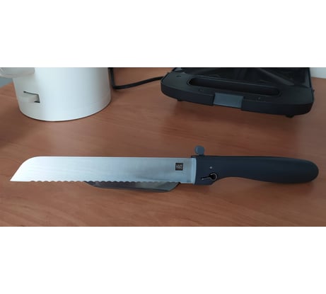 Отличный нож, справляется со своей задачей на отлично. Удобно регулировать толщину отрезаемого ломтика хлеба, кусочки получаются один-в-один. Длина лезвия почти 18 см, длина рукоятки 14 см., что очень удобно. Рекомендую к покупке!