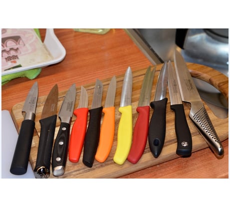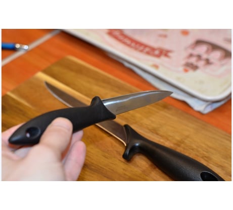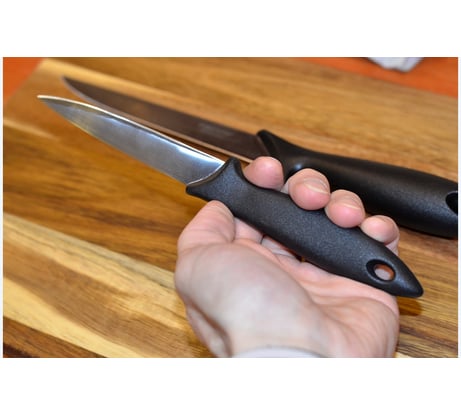 Использую пять лет. Точил два года на ручной точилке Фискарс, последние три года на электрической точилке. Для чистки овощей, нарезки любых продуктов незаменимый нож. Прекрасная вещь для кухни. Ни секунды сожаления.