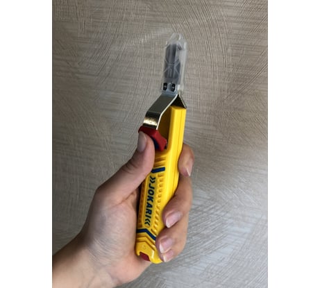 Стриппер такого типа предназначен для ситуаций, когда работать ножом с пяткой или автоматическими стрипперами иных конструкций просто невозможно в силу разных причин. Моя ситуация - разделка толстого кабеля ВВГнг-FRLS 3х2.5 (его изоляция толще, чем у стандартной ВВГнг четверки), который, к тому же, был подморожен (околонулевые температуры). Такую мощную изоляцию нож с пяткой попросту не берет, даже книпекс, а об автоматических стрипперах и говорить не приходится. Данный же стриппер справлялся превосходно, обеспечивая и круговой надрез в нужном месте, и продольный надрез, что кратно облегчало разделку тугого и прочного кабеля с гарантированной сохранностью изоляции жил. Особенности работы, которые нужно учитывать: 1. Данный стриппер требует обязательной подстройки вылета лезвия под каждый конкретный кабель. Если у вас на объекте кабели разные - замучаетесь под каждый подстраиваться, и обязательно ошибетесь. А неверный вылет лезвия - это либо недорез изоляции (что не так страшно), либо перерезанные жилы, что уже совсем не весело. Поэтому: взяли кабель, сделали несколько тестовых надрезов (и круговых, и продольных), подстроили лезвие, чтобы оно чуть-чуть не дорезало до жил, и уже потом спокойно работаем. 2. В силу принципа работы, стриппер способен корректно резать изоляцию только на хороших центрованных кабелях, т.е. таких, где жилы собраны в центре кабеля, и расстояние от жил до границ внешней изоляции примерно одинаковое по всей площади сечения. Если это не так - то стриппер, очевидно, не подойдет. Это палочка-выручалочка для сложных случаев. Всегда приношу с собой на объект, потому что там, где он способен помочь, вы больше ничем не справитесь (либо перочинный нож - и вперед, со всеми вытекающими последствиями). Рекомендую.