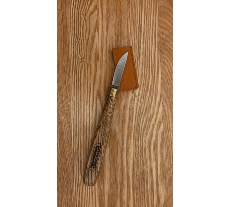 Ножи с прямым обухом и изогнутой режущей кромкой отлично подходит как для съёма лишнего материала, так и для финишной работы при резьбе по дереву. Особенностью этой модели является спуск клинка от обуха. Отличный нож как для начинающих, так и для профессионалов.Удобная рукоять из твердых пород древесины. Рукоять покрыта маслом для защиты древесины. Место всада клинка укреплено латунным кольцом и закрыто кожаной вставкой. Аналог ножа для резьбы по дереву "SloydKnife". Все ножи заточены и готовы к работе.