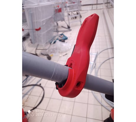 Работаю не таким но похожим инструментом. Кто вопит про нарезание резьбы тот не работал ridgid, тот тоже нарезает, только стоит в разы дороже. Итак хочу поделиться опытом стоей работы. Два варианта: 1)ставим метку, нажав курок заводим до появления поцентру окошечка, надеть крепёж для трубы с ровной стороны инструмента( там с одно ровно, со второй мешает я язычок для снятия вставки под 40 трубы) крутим несколько раз по стрелочке, три раза не меньше, обычно. Когда труба отрезана, подчищаем канцножом, место отрыва трубы на нафаске(можно на это забить, но я делаю) далее знаете зачем отрезали 2) рисуем траекторию реза Контролирую в окошечке линию реза крути трубу, Второй способ кажется проще, но по факту первый быстрее
