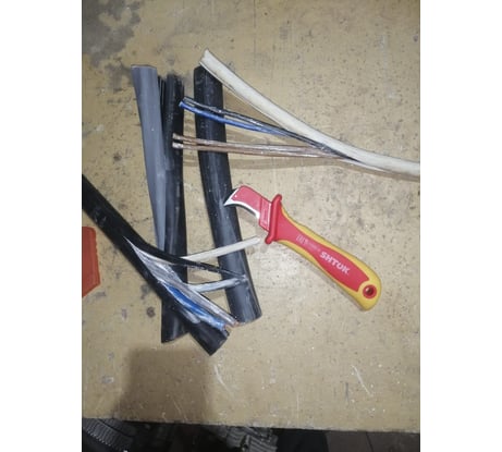 Хороший нож. Если правильно поймать наклон ножа относительно кабеля или провода даже типа ПВС, то можно долго его разделывать в длину. Рукоятку чуть выше поднимаешь и пошел.