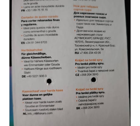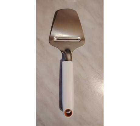 Нож для сыра Fiskars FF 1016129 имеет специальную форму лезвия. Металл изогнут для лучшей прочности.