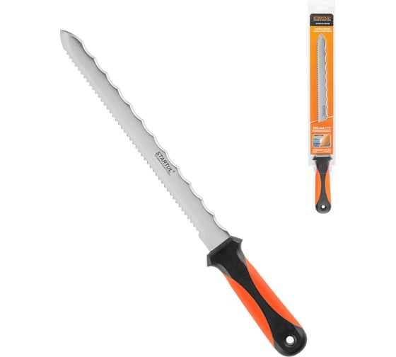 Нож строительный для теплоизоляционных материалов 280 мм STARTUL Master (ST2060-28) - предназначен для резки изолирующих материалов, минеральной ваты, рулонных и плитных утеплителей, стекловаты, пенопласта, пенополистирольных плит и т.д. Полотно имеет две режущих кромки, что удобно для работы с разными типами материалов.