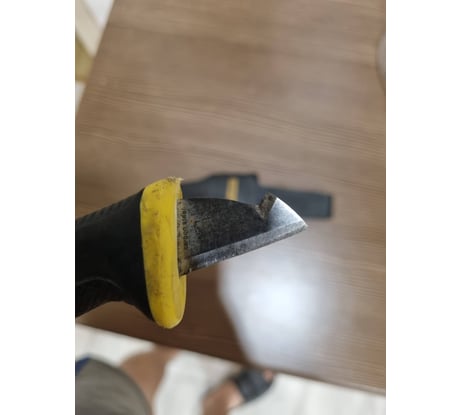 Отличный нож, можно на веревку соединить. Удобная ручка, ножны с прищепкой для одежды, очень удобно работать, средняя сталь. Я электрослесарь в шахте, моему рабочему ножу более 5 лет, заточка только камнями, на наждаке только топоры точу, а камушками до Р1500, износ процентов 7. Заточкой можно 2-3 разделки сделать кабеля под муфты 6кВ, но в таких случаях беру камень с србой и после каждой правлю нож. Домашнему 7 лет, на фото.