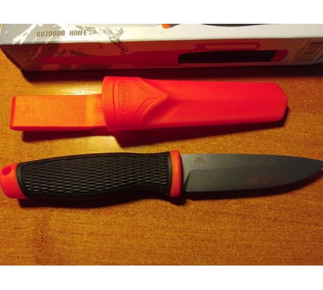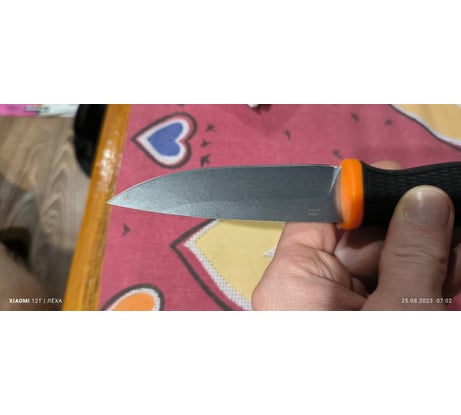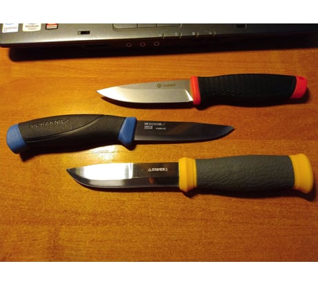 отличный нож, сталь по ощущением поинтересней моры, кромка меньше заминается и проще точится чем сканди, строгал древесину, резал твердый пластик, заточку держит отлично. Рукоять меньше чем у моры, но при разделке рыбы мне понравился больше