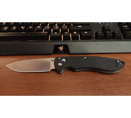 - люфтов нет - очень острый ( режет бумагу как лезвие ) - можно менять прищепку на обе стороны на рукоятке - есть отверстие под темляк -удобная рукоятка по длине и материалу -не является холодным оружием