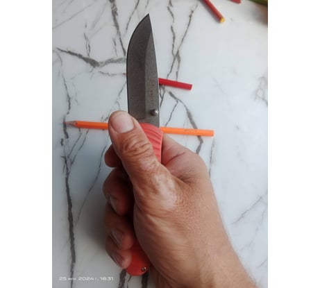 Хотел яркую рукоятку, чтобы был заметен в траве, в лесу. Но она скорее красная, чем оранжевая.