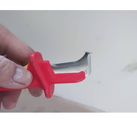- Частично изолированное изогнутое лезвие с «пяткой» для легкого вскрытия оболочки кабеля без риска повреждения жилы;
