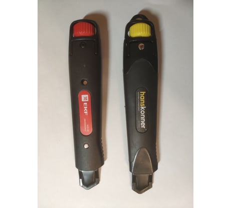 Очень качественный нож, теперь бы найти к нему качественные лезвия нужной толщины. На фото в сравнении с другим ножом подобного конструктива. Удобство замены лезвия на 4, но это цена за конструктив и отсутствие люфта при работе.