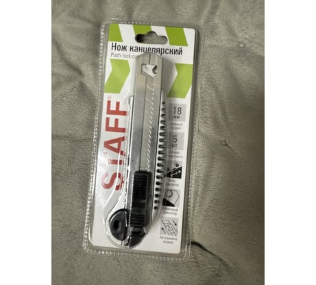 Нож канцелярский Staff 18 мм, 5 лезвий в комплекте, автофиксатор, металлический цвет 273930