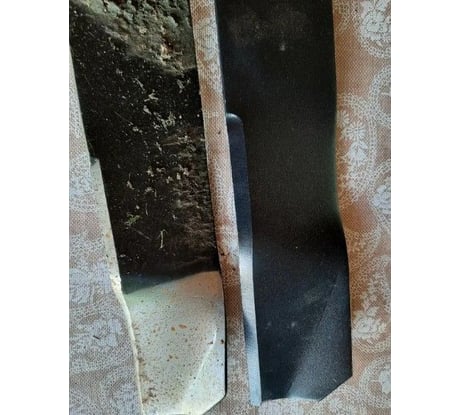 Сталь крепкая. Посадочное место один в один- подошёл без проблем. На фото рядом родной подсточенный нож. При покупке различной техники уже много лет по возможности выбираю бренд Patriot.