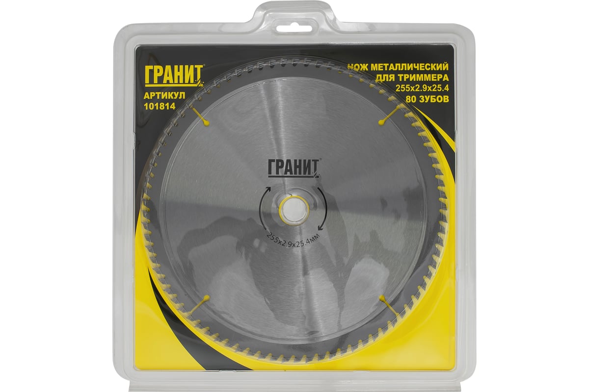 Нож металлический для триммера Гранит ТМ 80 ЗУБОВ, 255х2.9х25.4мм - усиленный NEW 101814