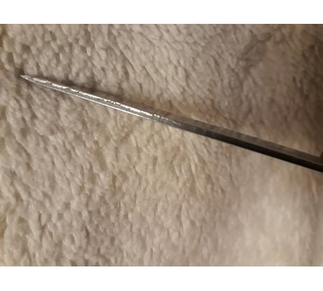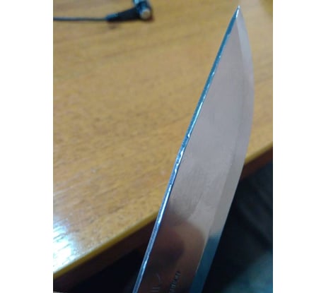 Нож продан без упаковки. Без сомнения, оригинал. Вес 78г. С ножнами - 110г. Клинок со скандинавским спуском с микроподводом 0.1мм (без лупы не видно). Отполирован в зеркало. Обух не обработан.