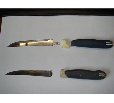 Ломается в месте сочленения лезвия и ручки, при небольшом надавливании.