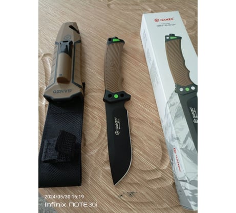 Ну что сказать. Неплохая покупка. Нож сидит в ножнах достаточно плотно. Есть резак для шнура, огниво, что тоже хорошо. И приятным бонусом правило для клинка. Хват удобный в любом положении, рукоятка без заусенцев.