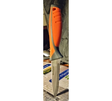 Отличный нож, острый, удобная ручка. В руке лежит удобно.