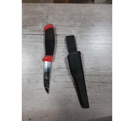 Цена со скидкой . Пластиковые ножны хорошо фиксируют нож и вешаются на пояс .