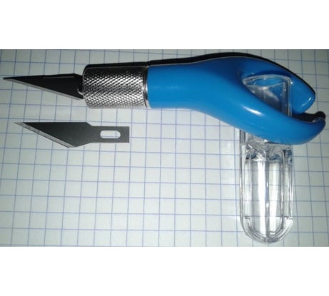 Подходят стандартные лезвия для макетных ножей, комплектное лезвие я сразу заменил на другое. Необычный механизм фиксации лезвия: он очень крепко держит лезвие, но во время замены лезвия нужно наугад пытаться вставить лезвие в паз, которого не видно под затягивающей манжетой. То есть в манжету с одной стороны вставляется держатель, с другой стороны лезвие, и затем всё это вместе с манжетой нужно накрутить на резьбу, при этом попав боками хвостовика лезвия в пазы сверху и снизу. Но это неудобство не имеет для меня никакого значения, так как надёжность удержания лезвия для меня гораздо важнее. В целом хороший макетный нож.