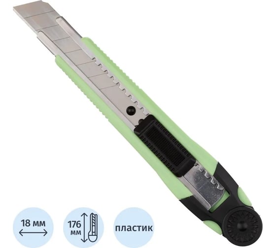 Нож универсальный Attache 18 мм, пластиковый, металлические направляющие, зеленый, авто 12 шт/уп 2175552