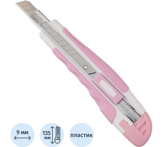 Нож универсальный Attache 9 мм, пласт со встав мет направляющими, розовый, авто 12 шт/уп 2175542