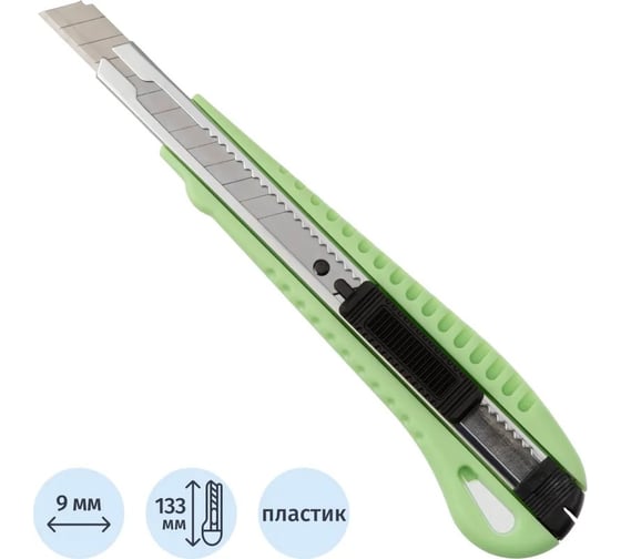 Нож универсальный Attache 9 мм, пластиковый, металлические направляющие, зеленый, 24шт/уп 2175556