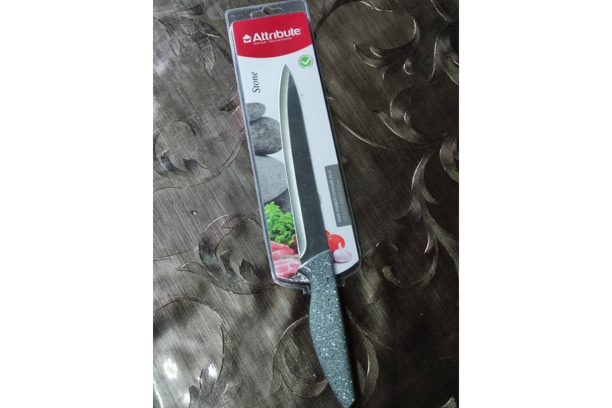 Нож универсальный Attribute STONE (20 см) незаменим в кухонных принадлежностях дома. Его острое лезвие из нержавеющей стали устойчиво к коррозии и обесцвечиванию, что делает его удобным и долговечным решением для кулинарии.