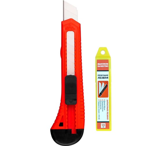 Нож усиленный doka 18 мм, красный, доп. комплект лезвий 10 шт. NYDB-Red