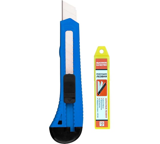 Нож усиленный doka 18 мм, синий, доп. комплект лезвий 10 шт. NYDB-Blue