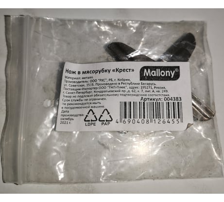Отзывы о ноже в мясорубку Mallony Крест 00 4383