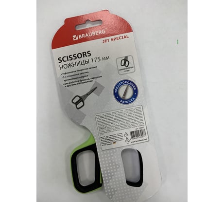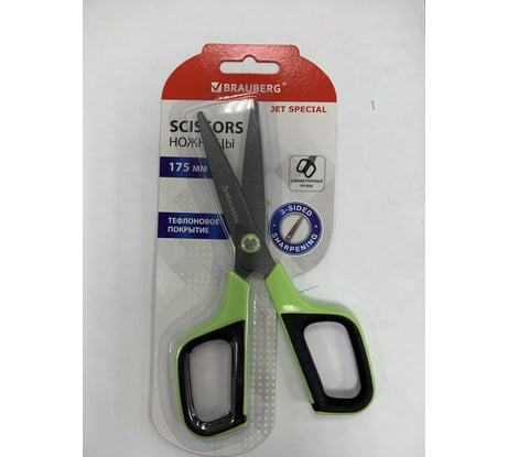 Ножницы BRAUBERG JET Special, салатовые, 175 мм, 3-х сторонняя заточка, тефлоновое покрытие, 238851