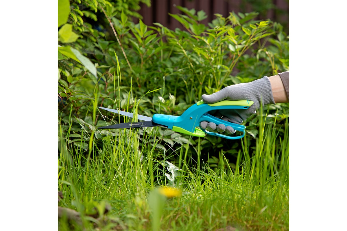 Газонные ножницы Palisad LUXE 60863 длиной 350 мм, с пластиковыми обрезиненными рукоятками, — инструмент для подстригания травы вдоль кромок газонов, дорожек, вдоль бордюров, ограждений, возле кустов. Поворотные на 180 градусов лезвия облегчают работу в труднодоступных местах. Гарда на нижней рукоятке защищает пальцы от царапин, проколов и ссадин. Механизм автооткрывания препятствует заеданию лезвий при стрижке жесткой травы. Ножницы помогут привести в порядок дачный участок или придомовую территорию.