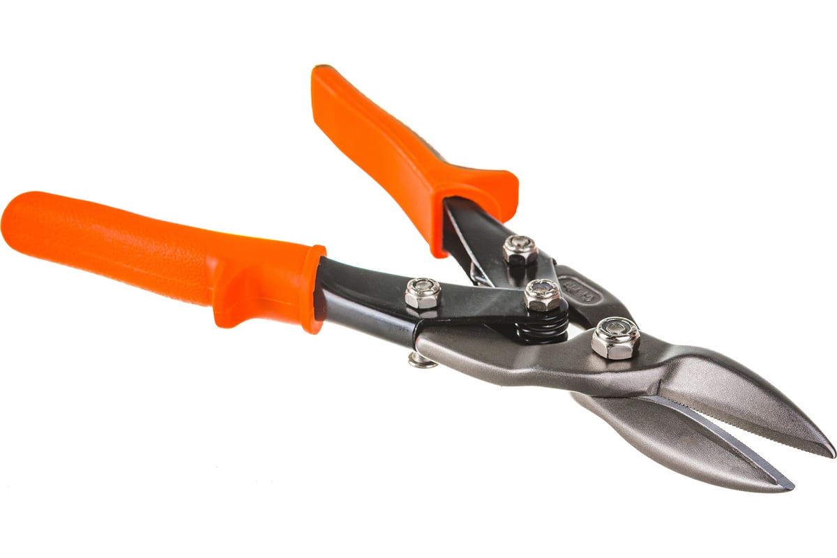 Ножницы по металлу NEO 250 мм прямые 31-050 оснащены удобными накладками на рукоятках с упорами для пальцев. Это позволяет проталкивать инструмент вперед даже при резке толстого листового металла.