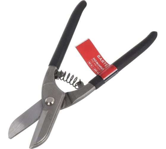 Ножницы по металлу пряморежущие BARTEX, 250 мм, с пружиной, черные ручки, 470213