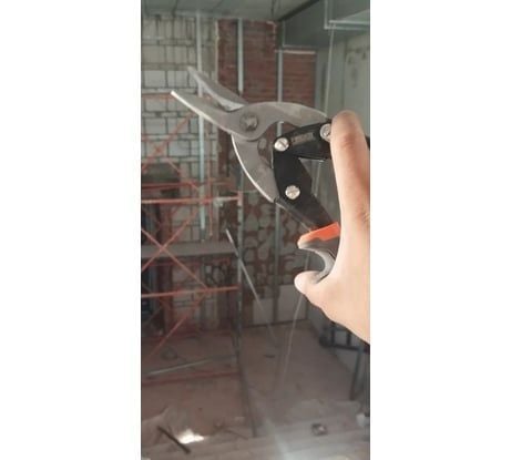 Режу тонкий лист для ограждений — лезвия острые, срез ровный, без заусенцев. Рукоять удобная, рука не устает при длинных полосах резки.