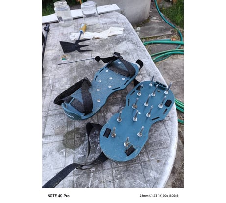 На газоне появился мох. Вестой газон обрабатывается электрическим вертекулером. Летом не рискнул, т.к. после него газон долго восстанавливается и теряет вид. Решил попробовать ножной аэратор. Пришло все в комплекте, собираются легко. Хотел попробовать одновременно с кошением газона, передвигаться неудобно. Отдельно за 2,5 часа обработал весь газон около 3-х соток. Шипы входят в землю легко, при вытаскивании, даже если стопа расположена не под прямым углом выброса земли нет. Но это наверно зависит от грунта. Как недостаток пластиковые пряжки из-за чего ремни периодически ослабевают, и их приходится подтягивать. Как бюджетный вариант для небольших газонов можно использовать. Повлияет ли их применение на качество газона, посмотрим. В качестве рекомендации обувь лучше использовать с массивным каблуком, чтобы зафиксировать в упор. Кроссовки и легка обувь не подходят, будут постоянно слетать.