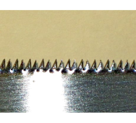 До Гросса не дотягивает. В целом неплохая пила. Ручка удобная. Пилить комфортно. Разводка достаточная для такого зуба. Полотно достаточно ровное. Зуб каленый, очень агрессивно заточен(пальцы надо беречь). Недостаток: для такого мелкого зуба, полотно должно быть минимум 0,8 мм, а лучше 0,6мм. Толщина полотна 0,9мм.