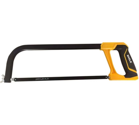 Ножовка по металлу SKOLE выполнена из алюминия, ручка из пластика с прорезиненным ухватом под руку.