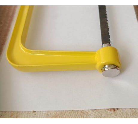 Рама силуминовая, легко сломать при перегрузке. Неудобный механизм фиксации полотна, шестигранный упор постоянно вылетает при установке полотна. Лечится магнитиком (см. «Неодимовый магнит Проф-Магнит диск D10x2 мм» в строке поиска). Полотно штампованное, без доводки, зубья завалены с одной стороны - точный пропил требует доводки. Большой люфт шестигранного упора в узле затяжки, полотно гуляет при пилении.