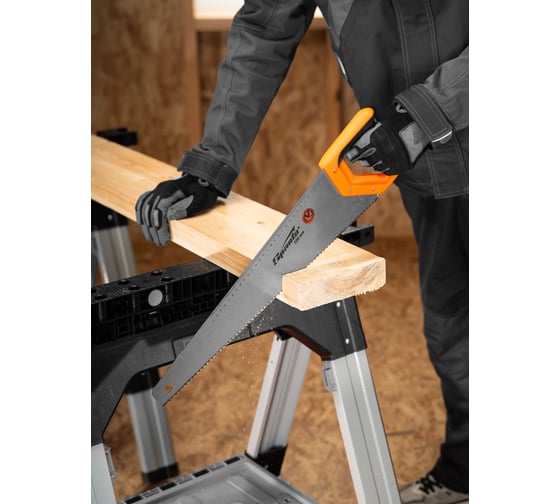 Ножовка по дереву, SPARTA 500 мм,7-8 TPI, зуб-2D, каленый зуб, линейка, двухкомпонентная рукоятка// 235035