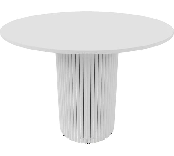 Обеденный стол GENGLASS круглый с белым металлическим подстольем и белой столешницей TRUBIS Wood GGT-03-3-3-L-100