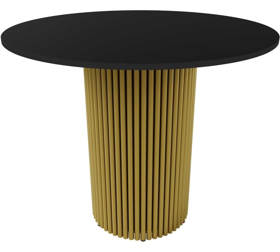 Обеденный стол GENGLASS круглый с металлическим подстольем 400x400 мм, TRUBIS Wood, золотое подстолье, черная столешница 90 см GGT-03-1-2-L-90 предназначен для дома или офиса.