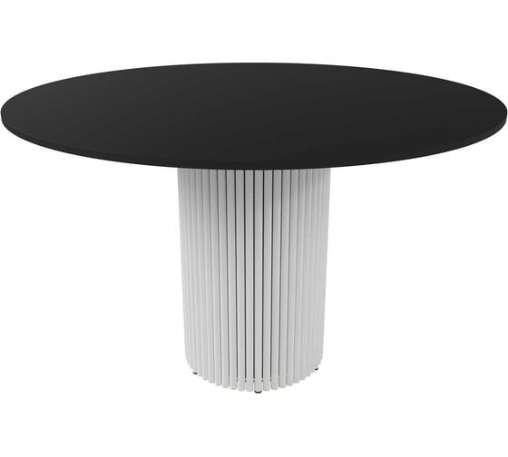 Обеденный стол GENGLASS круглый с металлическим подстольем 400x400 мм, TRUBIS Wood, белое подстолье, черная столешница 120 см, GGT-03-3-2-L-120, предназначен для дома или офиса.