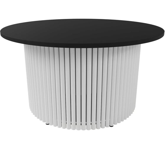 Журнальный стол GENGLASS круглый с металлическим подстольем 800x800 мм, TRUBIS Wood, белое подстолье, черная столешница 80 см GGT-03-3-2-M-80 предназначен для дома или офиса.